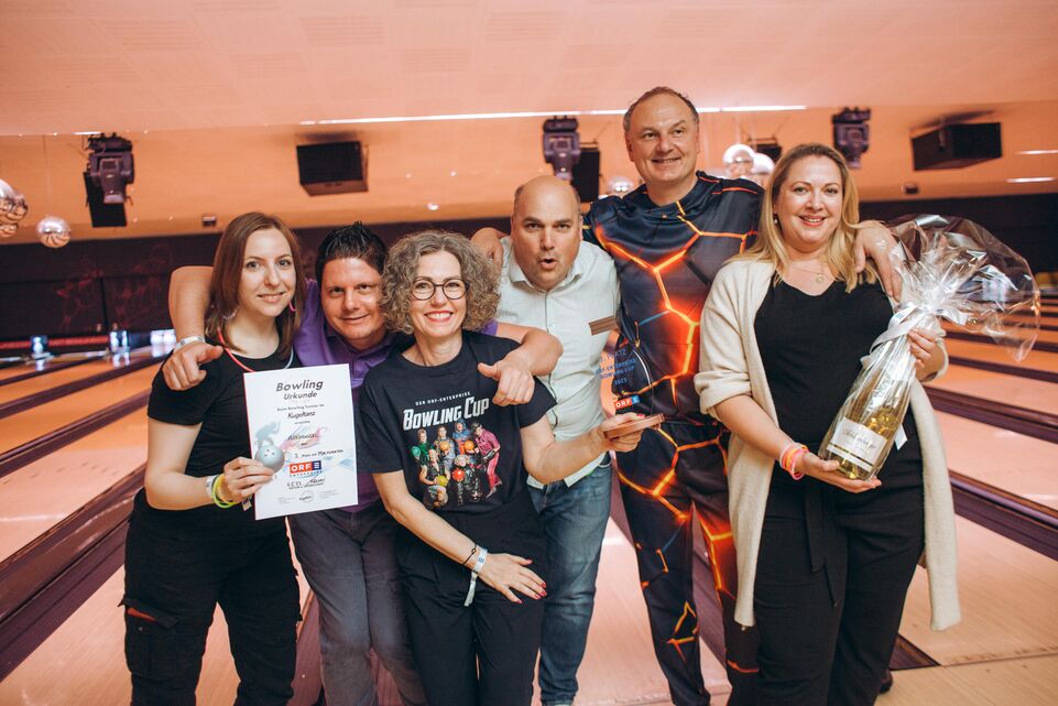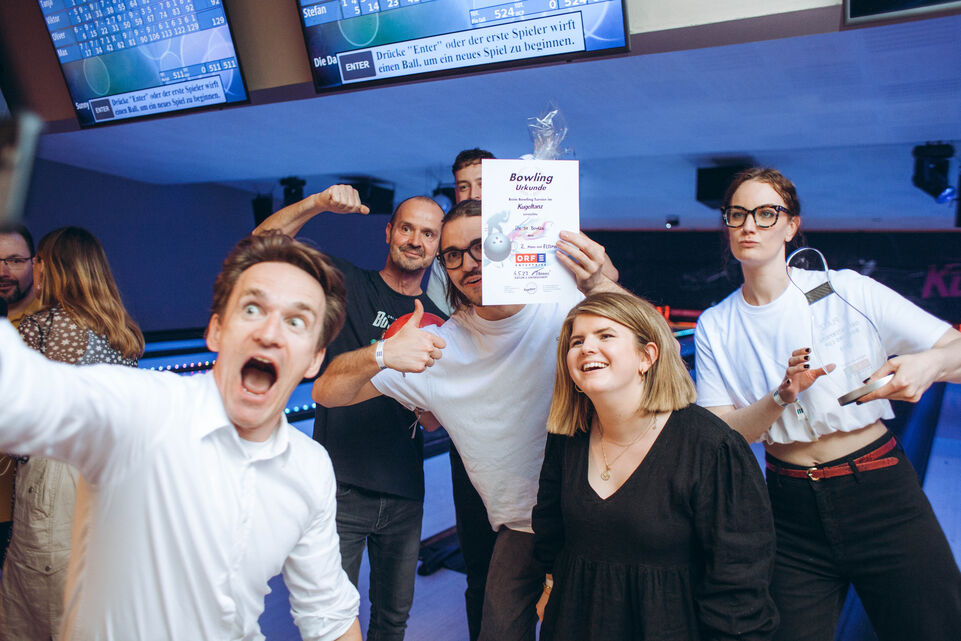 Es war uns eine große Freude, dass Sie am 04. Mai 2023 beim ORF-Enterprise Bowling Cup 2023 im „Kugeltanz“ im Wiener Prater dabei waren und die Pins erfolgreich zum Fallen gebracht haben! Wir sind noch immer beeindruckt von der sportlichen Figur, die Sie und Ihr Team auf der Lane und beim anschließenden Ö3 Disco-Bowling gemacht haben.